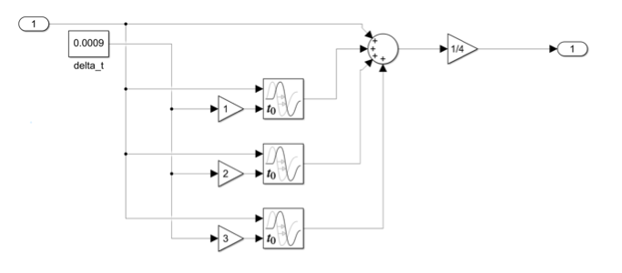In unserem Falle beträgt der zeitliche Abstand 0,1ms bzw. 0,0001s. Diesen Wert trägt man im nachfolgenden Zeitfilter als "Delta-t" ein, so wird der aktuelle Wert und die 3 nachfolgenden ausgemittelt und zum neuen Mittelwert gewandelt.